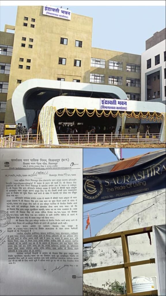 बिलासपुर । छत्तीसगढ़ की न्यायधानी बिलासपुर में शहरी विकास की आड़ में चल रहे एक बड़े और संगठित भ्रष्टाचार का ऐसा मामला सामने आया है, जिसने नगर पालिक निगम और टाउन एंड कंट्री प्लानिंग (TCP) विभाग की कार्यप्रणाली पर गंभीर सवाल खड़े कर दिए हैं। दस्तावेजों और स्वीकृतियों की परतें खुलने के साथ ही यह मामला केवल एक प्रोजेक्ट की अनियमितता तक सीमित नहीं रह गया है, बल्कि पूरे शहरी नियोजन तंत्र की विश्वसनीयता को कठघरे में खड़ा कर रहा है।मामला अज्ञया नगर क्षेत्र में प्रस्तावित ‘मेसर्स अनंत रियाल्टी’ नामक प्रोजेक्ट से जुड़ा है। आरोप है कि इस प्रोजेक्ट के माध्यम से बिल्डर *नमन गोयल* ने विभागीय अधिकारियों की कथित मिलीभगत से मास्टर प्लान और निर्माण नियमों को दरकिनार करते हुए शासन को गुमराह किया। दस्तावेजों में सामने आई विसंगतियों के अनुसार इस प्रोजेक्ट के लिए प्रस्तुत एरिया स्टेटमेंट में चार मंजिलों पर केवल 60 फ्लैट बनाने का उल्लेख किया गया था। लेकिन जब विभाग ने उसी प्रोजेक्ट का नक्शा स्वीकृत किया तो उसमें फ्लैटों की संख्या बढ़कर 90 और मंजिलों की संख्या छह दर्शाई गई।निर्माण नियमों और स्वीकृति प्रक्रियाओं को समझने वाले विशेषज्ञों का कहना है कि एरिया स्टेटमेंट और स्वीकृत नक्शे के बीच इतना बड़ा अंतर सामान्य प्रशासनिक चूक नहीं हो सकता। यह विसंगति इतनी स्पष्ट है कि किसी भी अधिकारी की नजर से छिपना लगभग असंभव है। इसके बावजूद इस तरह का नक्शा पास हो जाना पूरे अनुमोदन तंत्र पर गंभीर सवाल खड़े करता है।इस पूरे मामले का दूसरा चौंकाने वाला पहलू उस आर्किटेक्ट या इंजीनियर का नाम है जिसके माध्यम से यह नक्शा तैयार किया गया। दस्तावेजों में ‘विकास सिंह’ नाम दर्ज है। लेकिन बिलासपुर शहर में इस नाम का कोई पंजीकृत आर्किटेक्ट या इंजीनियर उपलब्ध ही नहीं है। नगर निगम के रिकॉर्ड और पेशेवर संस्थाओं से प्राप्त जानकारी के अनुसार इस नाम का कोई भी व्यक्ति आधिकारिक रूप से वास्तुकार या इंजीनियर के रूप में पंजीकृत नहीं है। यह तथ्य भी सामने आया कि इसी नाम का उपयोग पहले भी कई निर्माण परियोजनाओं के फर्जी नक्शे स्वीकृत कराने के लिए किया गया था। बाद में जब इस पर संदेह गहराया तो नगर निगम ने इस नाम से जुड़े लाइसेंस को निलंबित कर दिया था। इसके बावजूद उसी पहचान के आधार पर एक बड़े प्रोजेक्ट को मंजूरी मिल जाना इस पूरे तंत्र की पारदर्शिता पर गंभीर सवाल खड़े करता है।मामले की परतें यहीं समाप्त नहीं होतीं। शहर में हाल ही में अवैध निर्माण के खिलाफ हुई एक कार्रवाई ने इस कथित नेटवर्क की झलक और स्पष्ट कर दी। 13 मई को नगर निगम ने पुराने बस स्टैंड के पास स्थित महुआ होटल पर अवैध निर्माण को लेकर बुलडोजर चलाया था। जब इस होटल के निर्माण से 